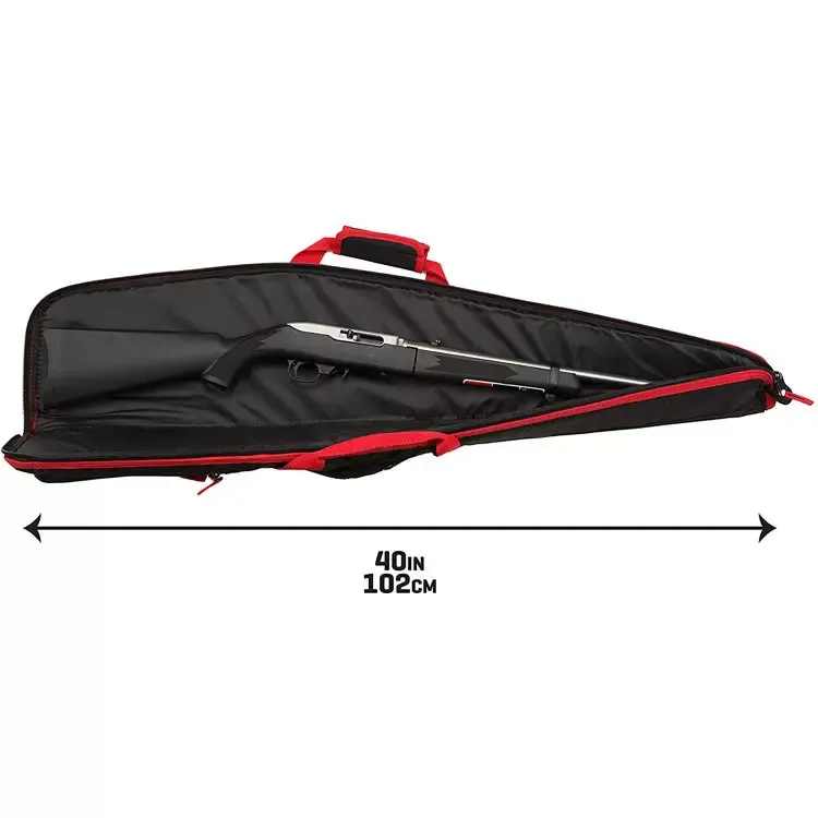 Этот 40-дюймовый мягкий чехол для винтовки имеет элегантный и функциональный дизайн с яркими красными акцентами, которые повышают его визуальную привлекательность и заметность. Боковые карманы на молнии обеспечивают дополнительное место для хранения аксессуаров, а мягкая внутренняя обивка надежно защищает ваше оружие от ударов.