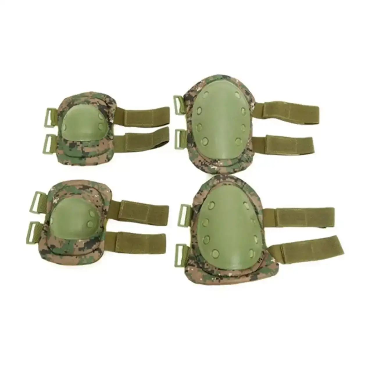 Эти тактические накладки на колени и локти обеспечивают надежную защиту благодаря прочной внешней оболочке, усиленной металлическими заклепками для дополнительной безопасности. Двухслойная подкладка обеспечивает комфорт при длительном ношении, а регулируемые эластичные ремни с застежками-крючками гарантируют надежную посадку для различных типов тела.