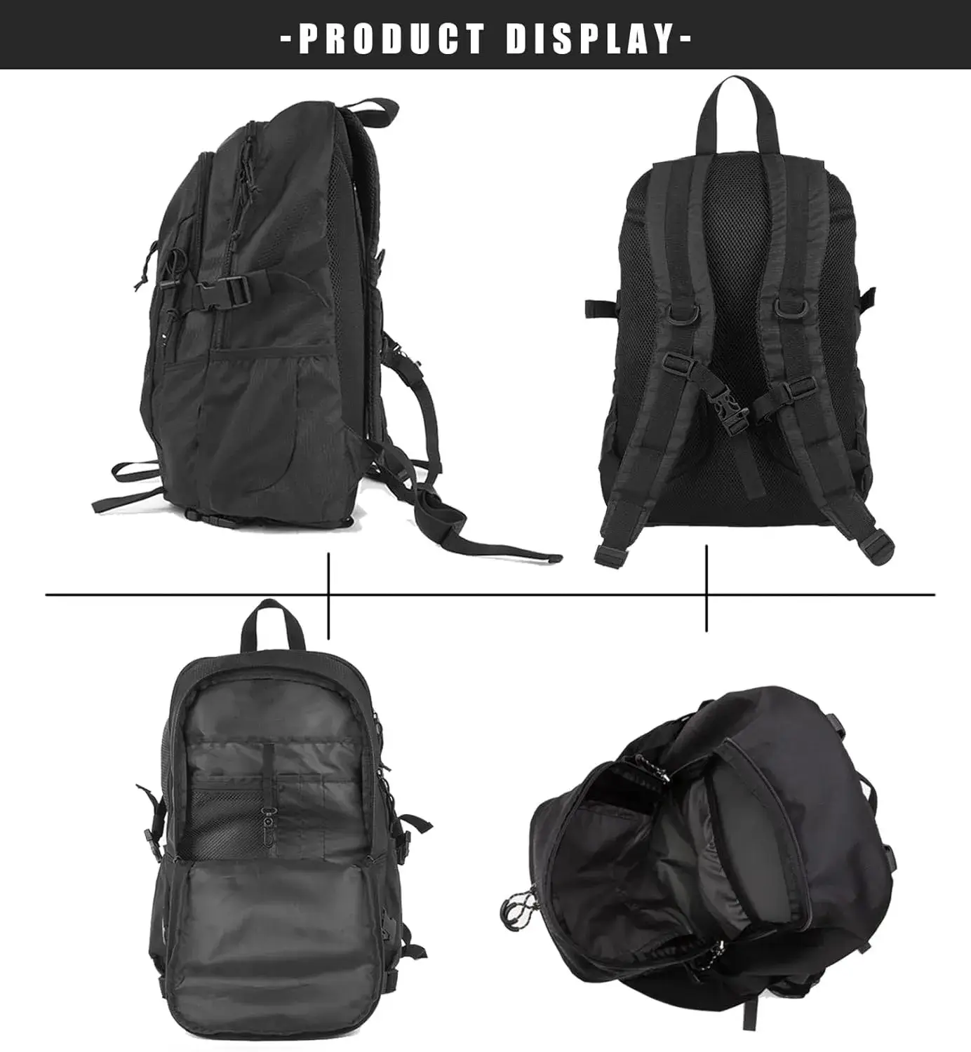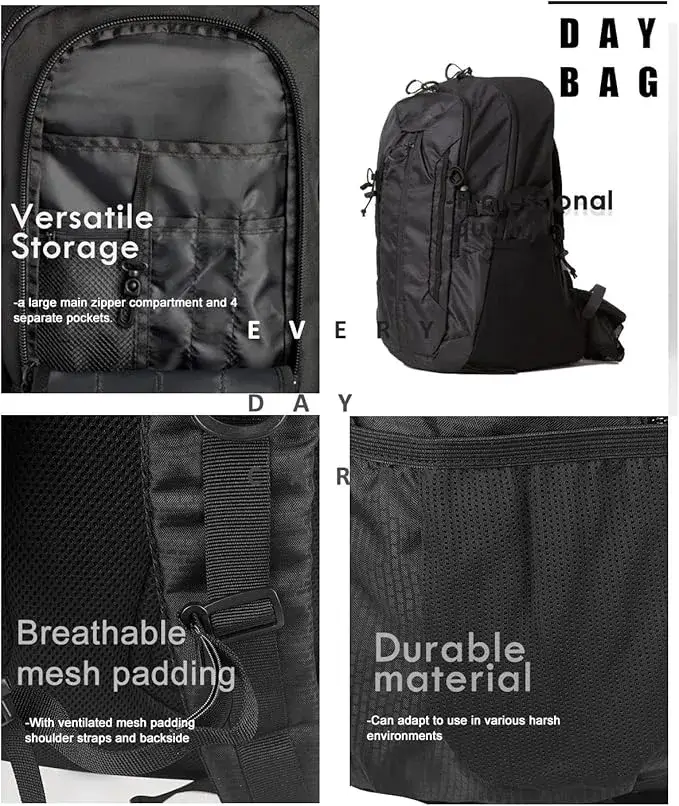 Black Lightweight Outdoor EDC Backpack