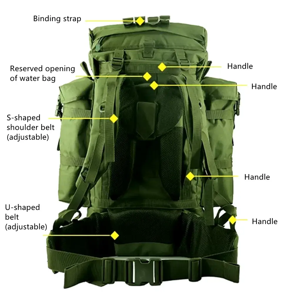 This large internal frame backpack is designed for durability and heavy loads, making it ideal for multi-day adventures. Made from tough 900D Oxford cloth, it features ample storage, adjustable straps, and a reinforced metal frame for weight distribution. The camo pattern provides tactical styling, while its 2.7 kg weight ensures solid construction without being overly cumbersome.