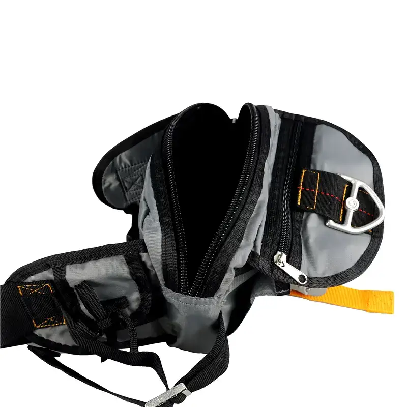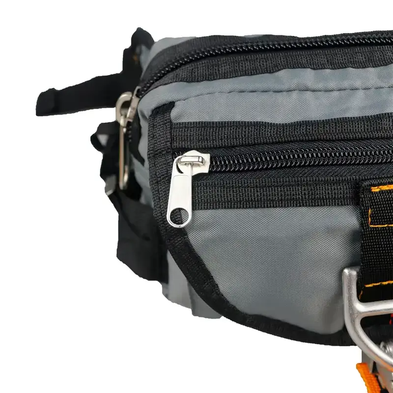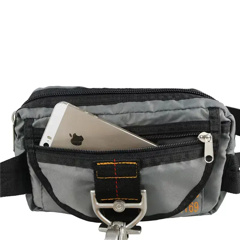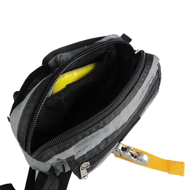 This parachute-style EDC waist bag combines utility and style, featuring multiple zippered compartments/pockets for organizing small essentials like phones and tools. Its water-resistant construction with precise orange stitching and military-inspired text ensures a tough yet lightweight build perfect for active use.