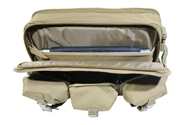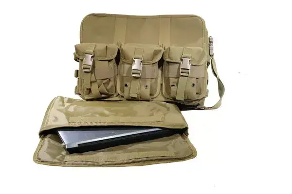 Тактическая сумка-мессенджер для ноутбука обеспечивает прочную конструкцию в сочетании с повседневной функциональностью. Внешняя сторона сумки оснащена тремя передними карманами с застежками, идеально подходящими для хранения инструментов, кабелей и аксессуаров. Внутреннее отделение для ноутбука с мягкой подкладкой обеспечивает надежное хранение ноутбука во время путешествий или работы в тактической обстановке.