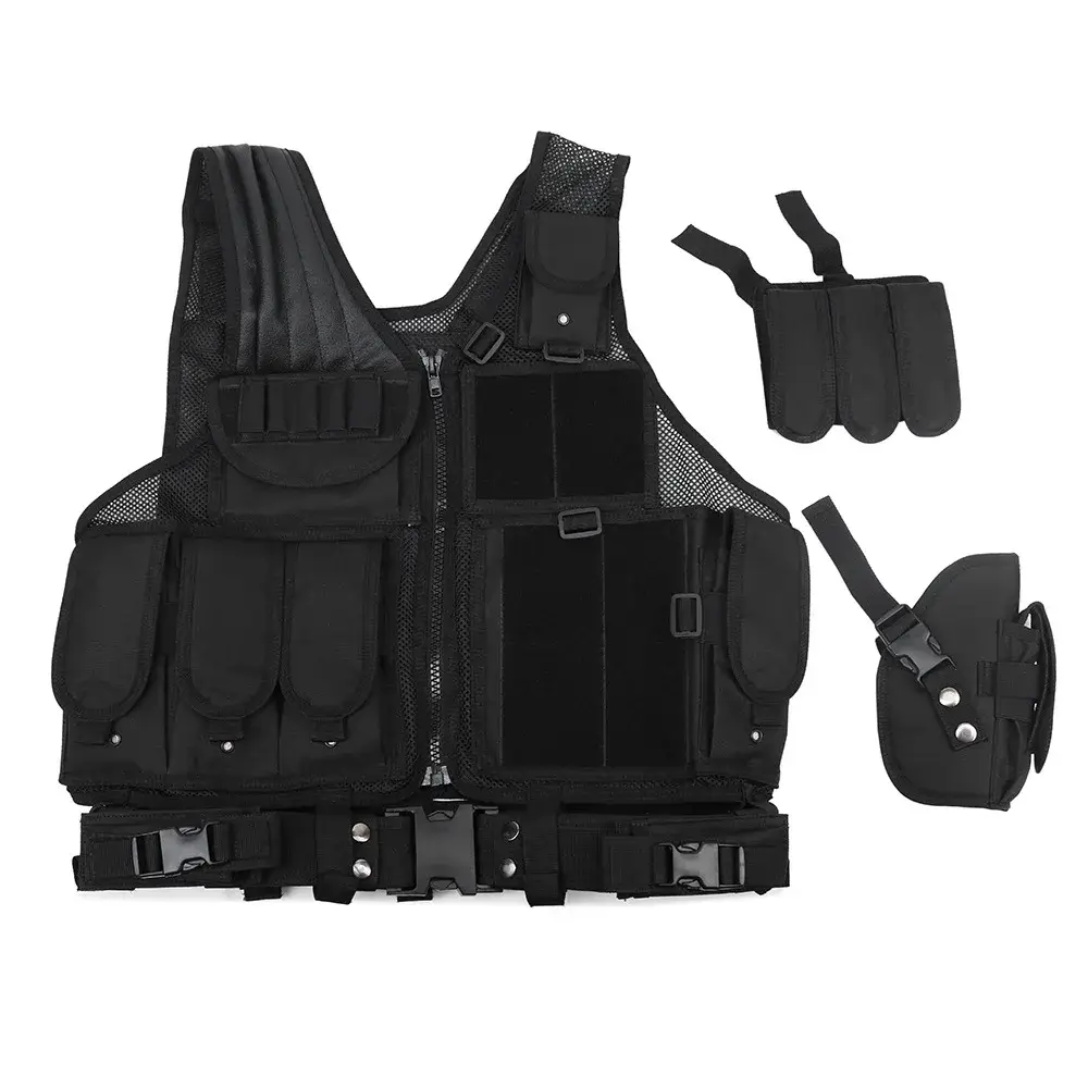 Тактический жилет Cross Draw оснащен рядом подсумков и отделений, предназначенных для обеспечения высокой универсальности в полевых условиях. Он имеет прочную переднюю часть на молнии, регулируемые боковые ремни и задние сетчатые панели для воздухопроницаемости и надежной фиксации. Жилет также оснащен встроенной кобурой для пистолета на правой груди для быстрого доступа к огнестрельному оружию.